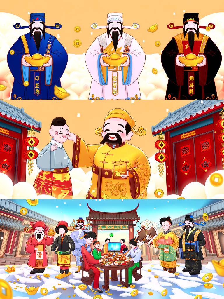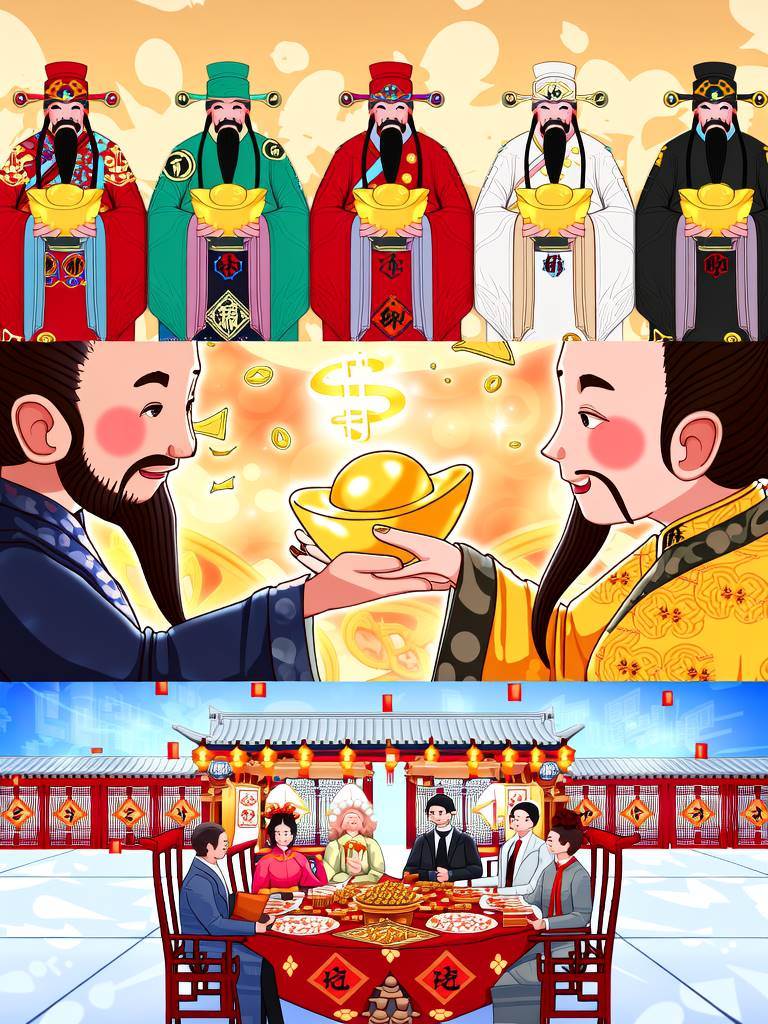 民俗信仰中,「五路財神」象徵東、西、南、北、中五個方位的財氣匯聚。