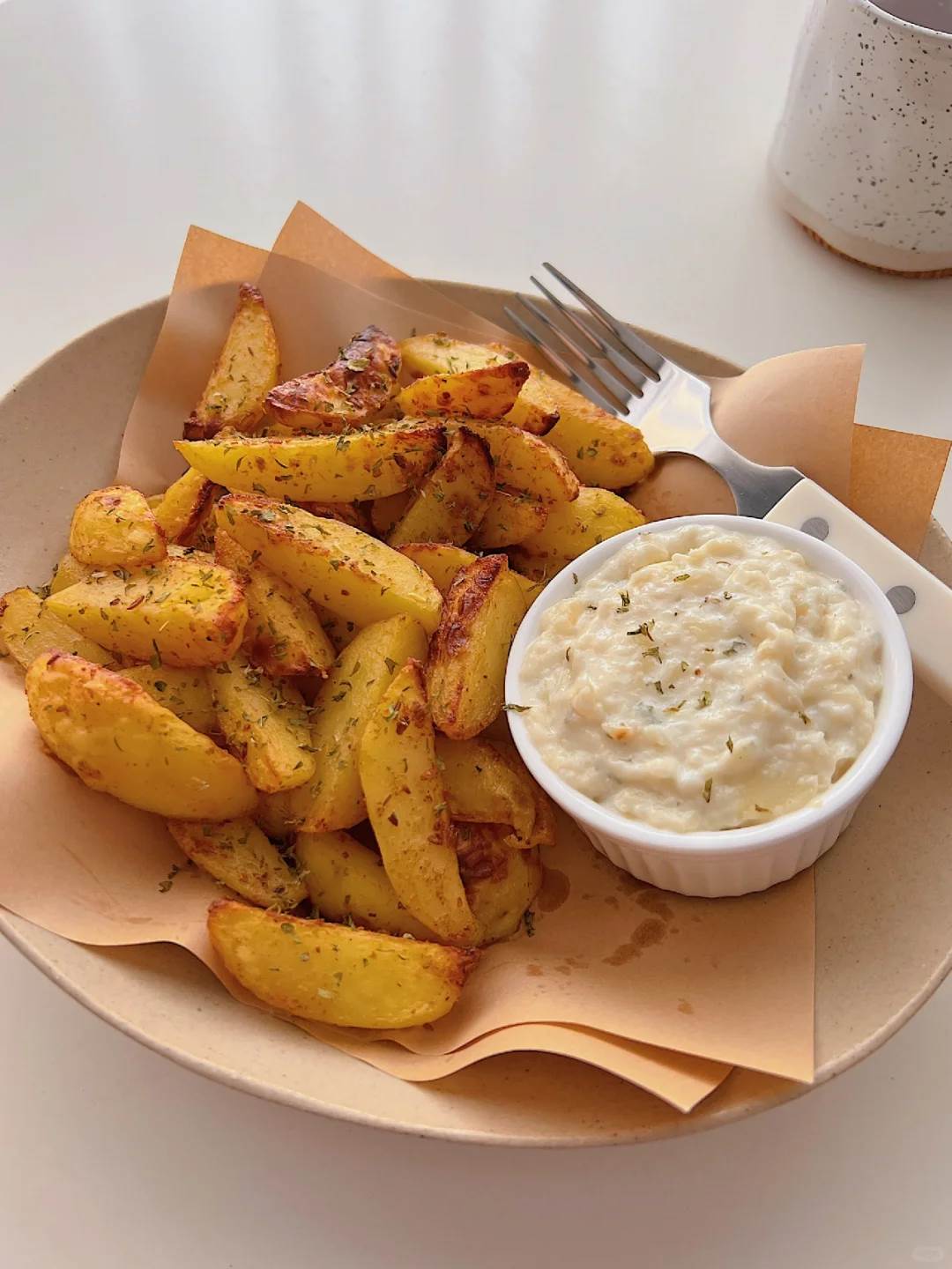 制作這道黃金脆薯需要準備冷凍土豆塊500克、玉米淀粉30克、現磨黑胡椒3克、大蒜粉5克、海鹽適量。醬料部分推薦經典組合:希臘酸奶50克混入檸檬汁10克與蒔蘿碎2克,或美乃滋30克調入是拉差辣醬5克與蜂蜜3克。將自然解凍的土豆塊用廚房紙徹底吸干水分,這是確保酥脆度的首要步驟。將淀粉與香料均勻裹在濕潤的土豆表面,靜置5分鐘待其自然返潮形成保護層。