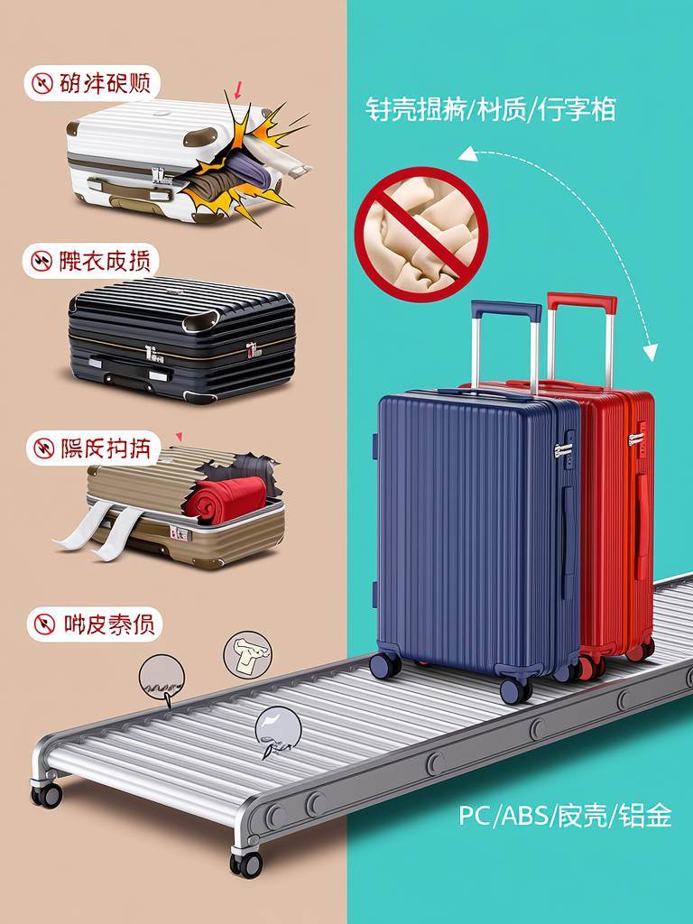 記得上次幫朋友代購化妝品,結果她的布質箱在轉盤上「開口笑」,我們蹲在地上撿粉餅的慘狀嗎?現在知道要怎麼避雷了吧!下次挑行李箱記得先翻過來看看標籤,選對材質才能讓你的旅行少點驚嚇、多點安心啦!