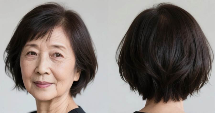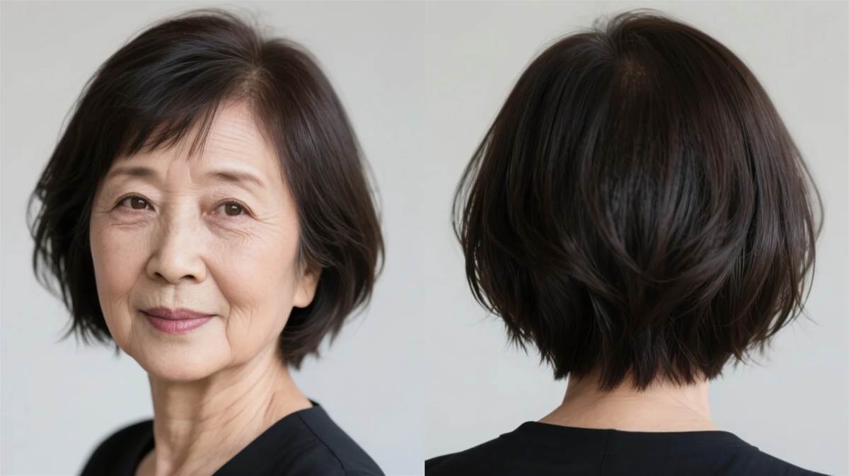 最顯年輕的長度落在下巴與鎖骨之間(約15-18cm),太短易顯老氣,過長則失去輕盈感。前短後長的斜向設計,能巧妙修飾臉部皺紋與鬆弛輪廓。