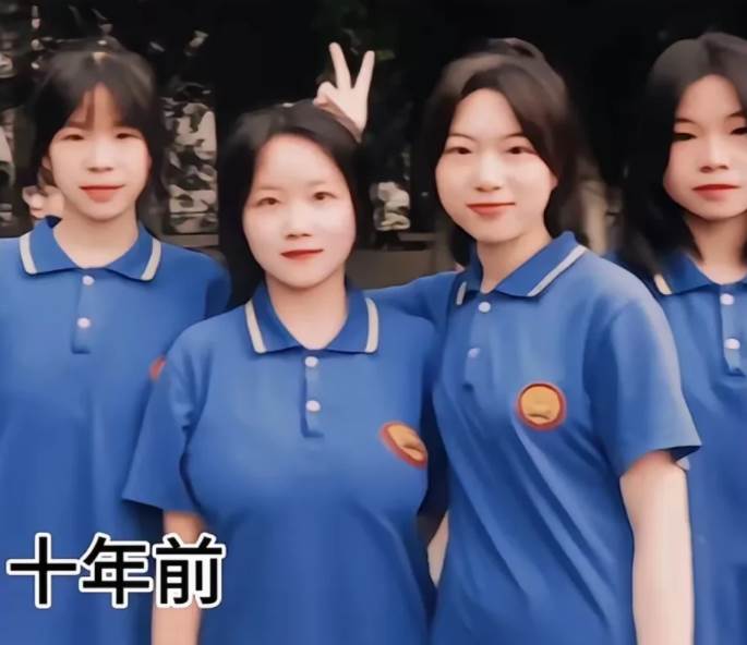 十年前的照片,洋溢著青春的氣息。四位女生站在一起,臉上帶著未脫的稚氣,眼神明亮而懵懂,那是屬于校園時光的純真與美好。比 V 的女生俏皮可愛,成為照片中的靈動焦點,而第三位女生雖不張揚,卻也有著獨屬于少女的青澀與溫婉。