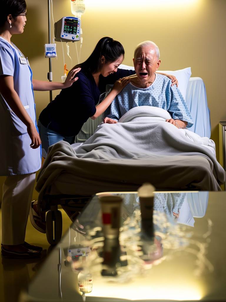 眾人皆驚愕,面面相覷,困惑與受傷的神情在臉上交錯。他們不知為何在父親生命的最后時光,竟被如此決絕地推拒于門外。「爸……」大女兒林娟剛想開口,卻被父親更顯激烈的手勢打斷。他劇烈地咳嗽起來,身體痛苦地蜷縮,卻又執拗地搖頭,緊閉雙眼,仿佛不愿再看見任何親人。終究,兒女們只能默默退出了病房,門在身后沉重地關上。走廊里一片沉寂,只剩下茫然無措的腳步聲在空曠中回響。林娟獨自走在醫院冰冷的長廊上,心口仿佛被父親那冰冷驅逐的手勢狠狠刺穿,留下空洞的疼。她下意識去摸手機,才發現慌亂中遺落在了父親的病房。返回的念頭升起,腳步卻沉重無比。躊躇片刻,她終究還是折返,屏住呼吸,輕輕靠近那扇緊閉的病房門。她本打算悄悄推門進去,然而門縫里漏出的微弱聲音卻讓她瞬間凝固了腳步。那是父親的聲音!帶著一種她從未聽過的、近乎破碎的哽咽,斷斷續續地,正對著看護傾訴著什麼。「……我…我對不起他們啊,阿芬……」父親的聲音微弱如游絲,卻字字清晰鉆入林娟耳中,「尤其……是阿娟……」林娟的手緊緊攥著門框,指尖發白。門內,父親那被病痛磨蝕得幾乎透明的嘆息聲,裹挾著遲到了半個世紀之久的真相,沉重地穿透門縫:「當年……我和她媽……唉,是我不對,我太要強,太固執……害得孩子們從小沒了媽……我總板著臉,不敢對他們好……怕他們依賴慣了,以后……以后沒了我這老頭子,日子會更難熬……」