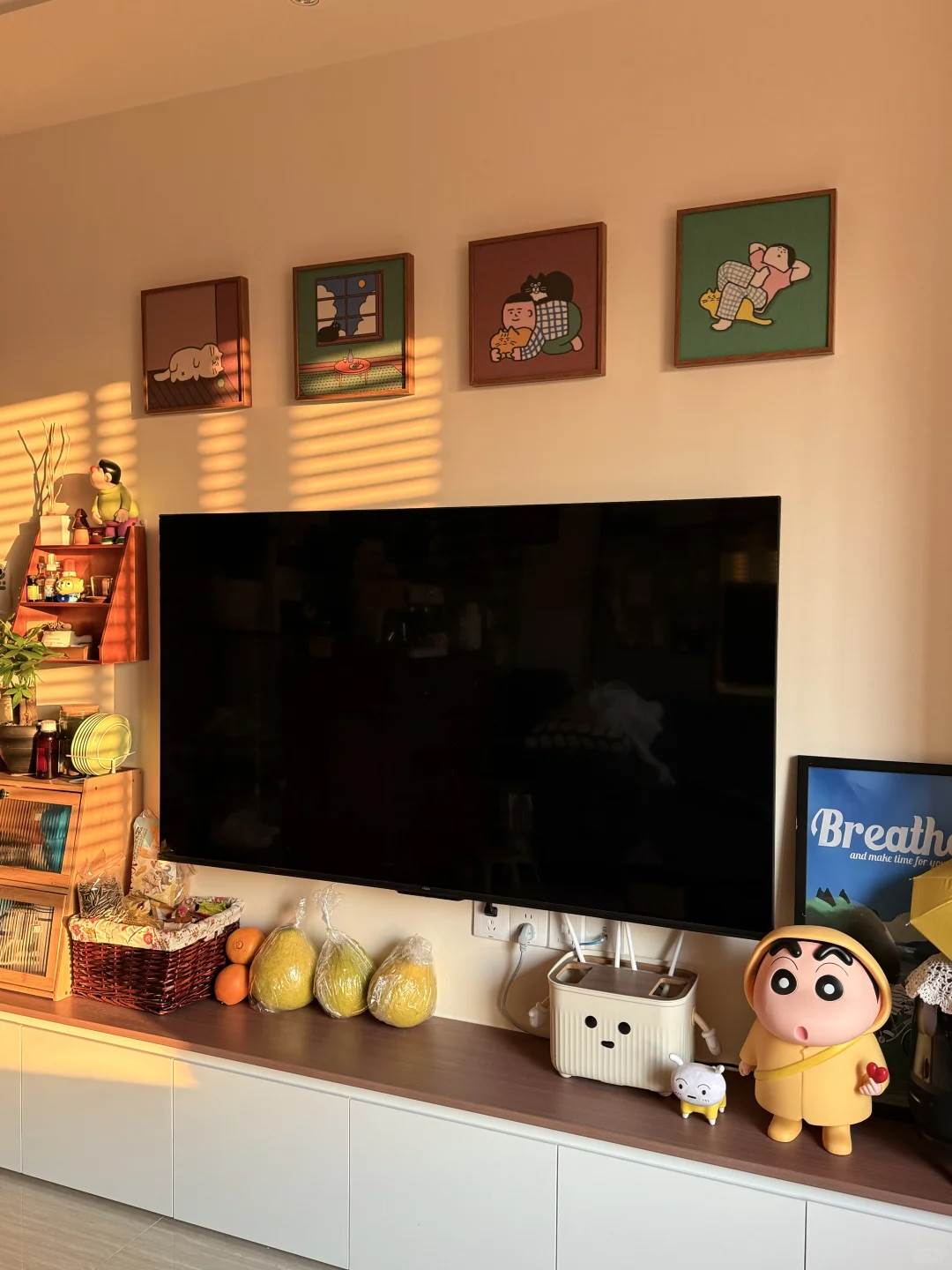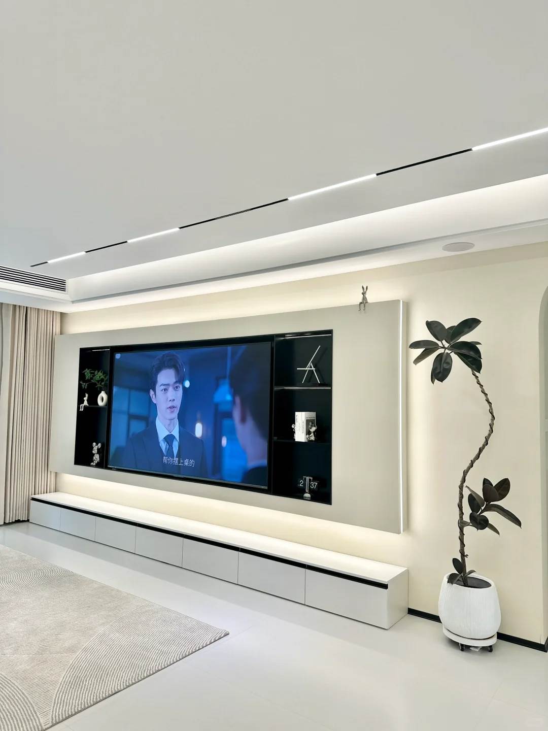 5倍(例如65吋電視約需4米),能降低電磁波干擾。若空間有限,可在電視兩側擺放圓形葉盆栽(如金錢樹),利用「木生火」原理轉化尖銳氣場,同時象征「家和萬事興」。