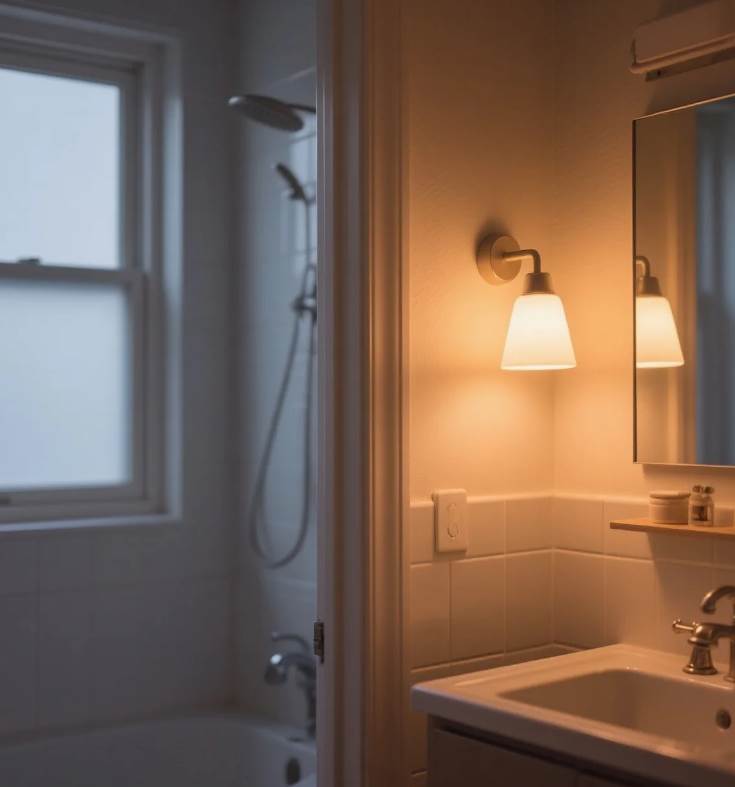 * 安裝暖色小夜燈,平衡浴室濕冷氣息。