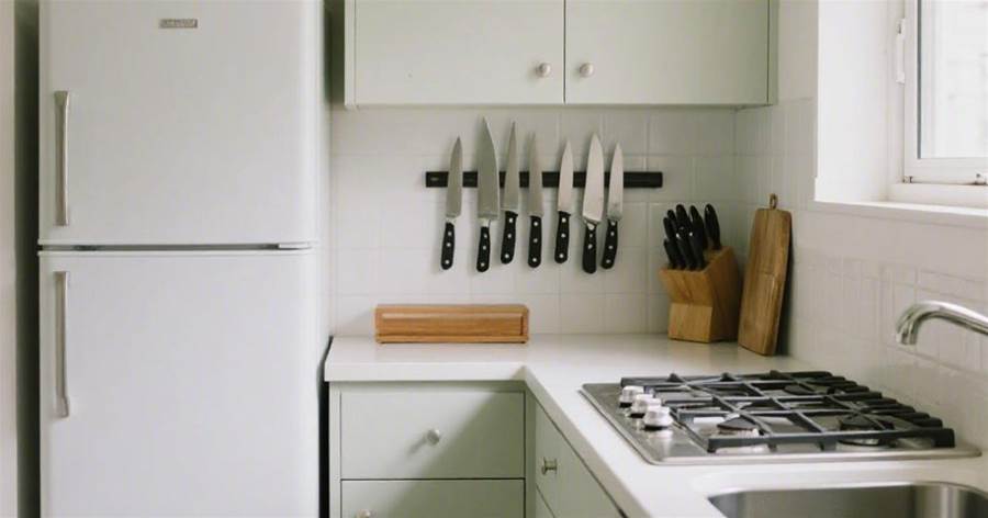 建議將刀具收納于廚房西側或西北方位,因西方屬金,能平衡刀具的金屬屬性。若空間受限,可選擇帶磁吸功能的刀架垂直收納,刀尖朝下避免「金氣外泄」。