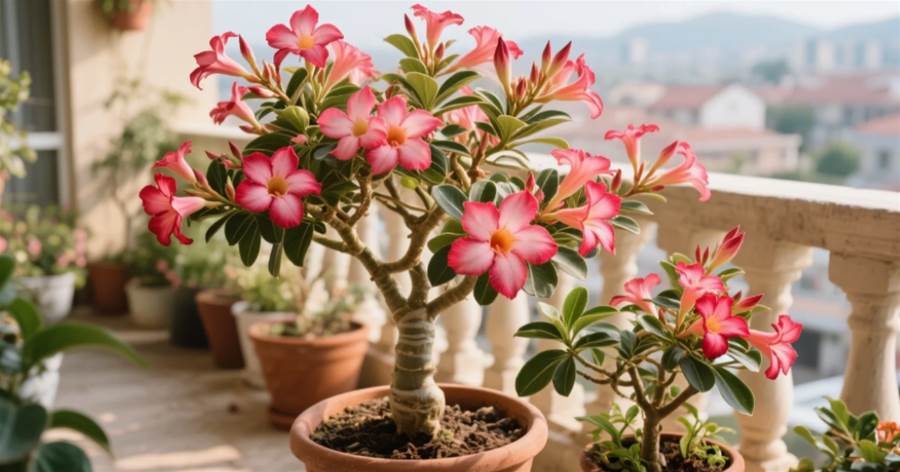 **沙漠玫瑰黑斑病有救了!花友親測:辣椒大蒜水噴3次,新葉恢復生機**