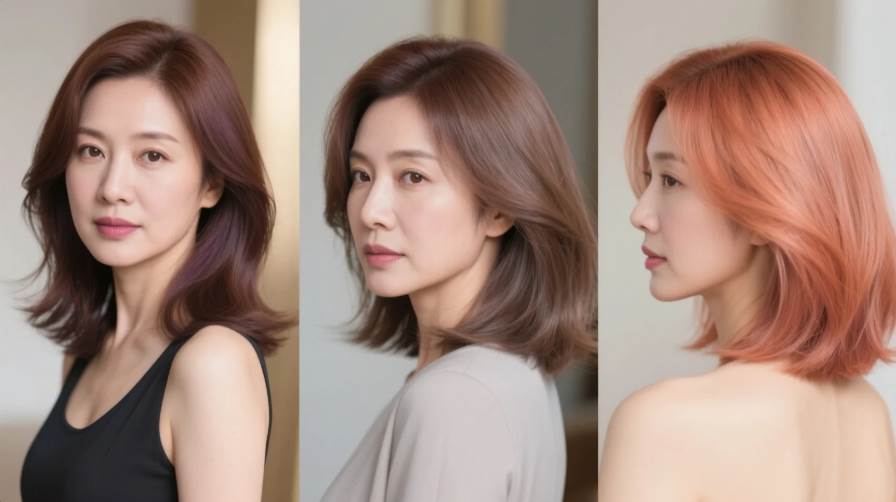 傳統單色染髮容易受原生黑髮影響,導致布丁頭明顯、髮色濁化,反而凸顯膚色暗沉。2025年流行的「雙層混染技術」結合兩種以上色調,在髮根與髮尾創造自然漸層:
