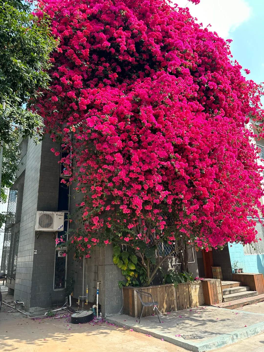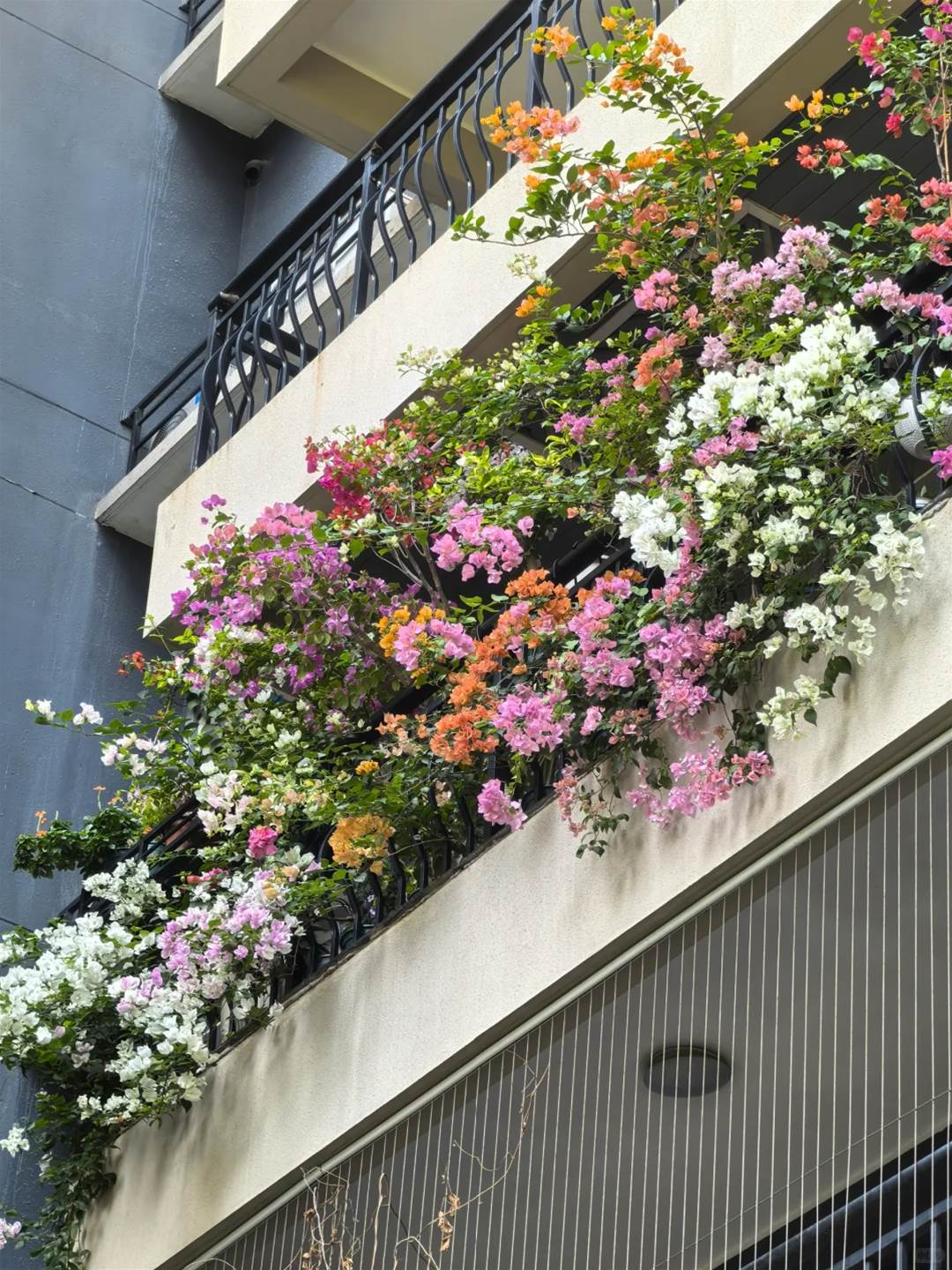 這種「曬不死」的皮實花,特別適合沒時間打理的上班族。我家那盆從5元牙簽苗開始養,第二年就垂到樓下陽台,物業還以為是新裝的裝飾燈籠。現在每天早晚在花架下喝茶,看著層層疊疊的花瓣在熱浪中搖曳,終于明白為什麼老花友都說:「夏天沒三角梅,就像春晚沒趙本山」。