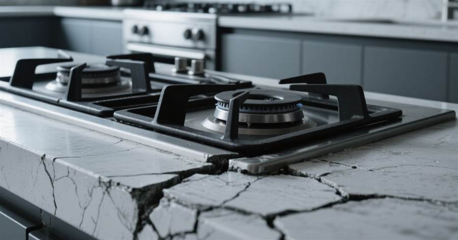 若暫時無法更換破損灶台,可用紅色防滑墊暫時覆蓋裂縫,同時盡快安排整修計劃。