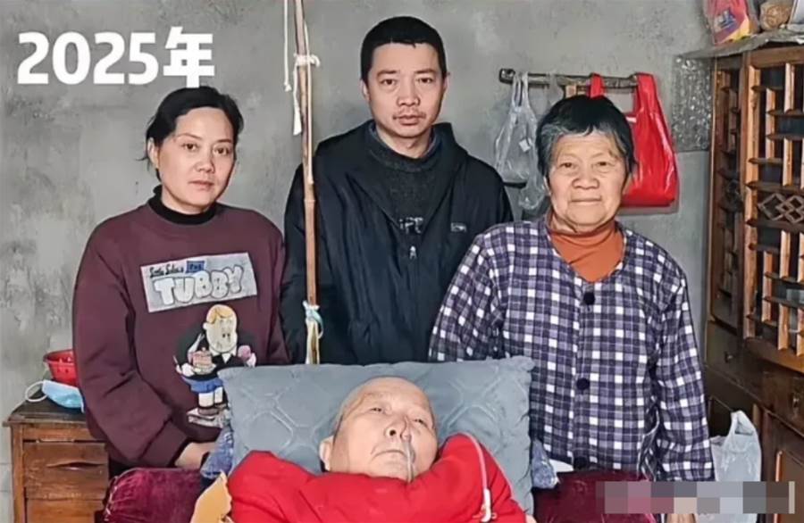 然而,再看 2025 年的照片,歲月的痕跡如刀刻斧鑿般明顯。曾經臥病的男子,身形愈發消瘦,眼神中多了幾分無奈與疲憊,仿佛被生活的重負壓彎了脊梁;曾經溫柔的女子,臉上也爬滿了皺紋,長期的操勞讓她失去了往日的光彩;后方的年輕男子,不再意氣風發,生活的磨難讓他的眼神中多了隱忍與滄桑;老人更是在歲月的侵蝕下,盡顯老態,身體也似乎更加孱弱。