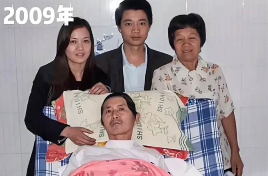 2009 年的照片里,青春與希望在每個人的臉上綻放。病床前的男子雖身體抱恙,卻依然目光堅定,仿佛病痛只是暫時的羈絆;身旁的女子溫柔美麗,她的手輕輕搭在男子肩頭,傳遞著無聲卻堅定的陪伴;后方站立的年輕男子,身姿挺拔,眼神中透著對未來的憧憬;一旁的老人,面容和藹,微笑中滿是對家人的疼愛。