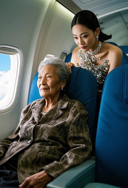 凌晨兩點的波音787客機上,經濟艙的尖叫聲刺破寧靜:「這老太太怎麼坐了我們的座位?」空乘人員快步走來時,只見一位銀髮老太戴著老花鏡,正襟危坐地翻閱《華爾街日報》。她腳邊放著印有「MIT」字樣的行李箱,身旁空位上搭著一件皺巴巴的灰呢大衣。「女士,這是您兒子的座位。」乘務員第三次提醒。老太緩緩抬頭,露出標志性的微笑:「年輕人,這是我的座位。」她掏出發黃的機票,上面赫然印著:2023年12月1日 紐約-上海 頭等艙 B2。
