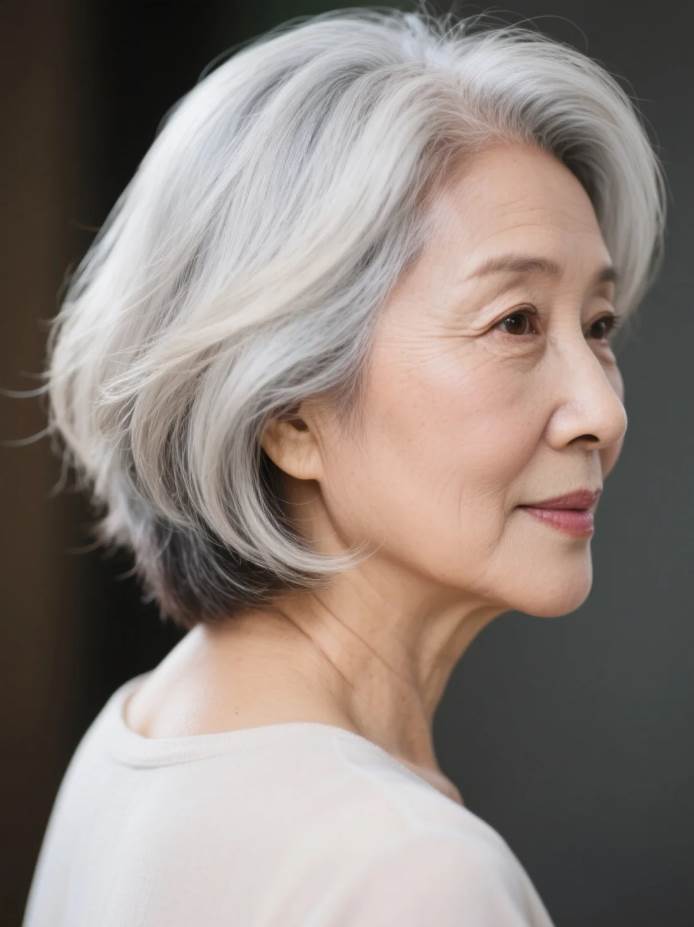 隨著年齡增長,白發比例增加、發質趨于干燥,過長的頭髮易顯厚重壓抑,而「耳下三公分」的長度巧妙平衡了三大需求: