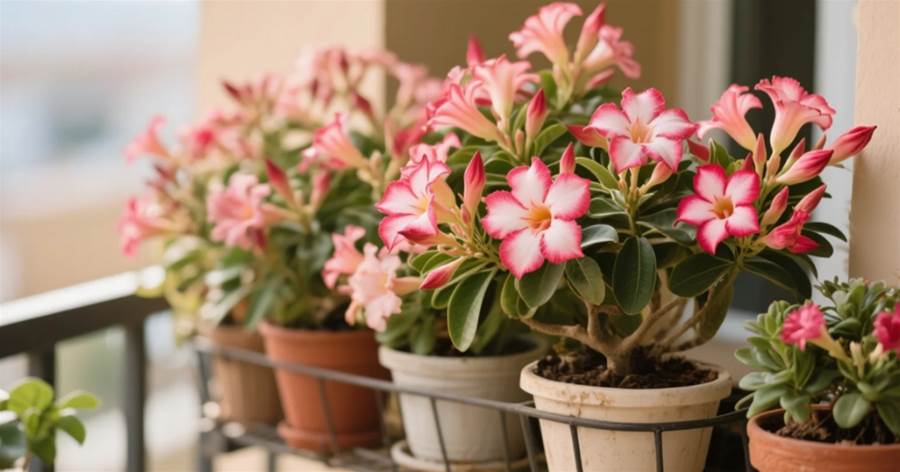 沙漠玫瑰的「大肚子」能存水,半個月澆一次都夠用。但很多人總覺得它渴,三天兩頭澆,根部泡爛了,霉菌自然找上門。