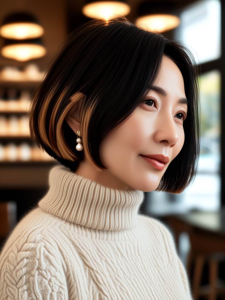 * **特色:** 經典鮑伯進化版,長度約在下巴或肩膀,**重點在于髮尾輕盈、層次從耳際開始內收**,形成自然向內的弧度,完美包裹臉側。