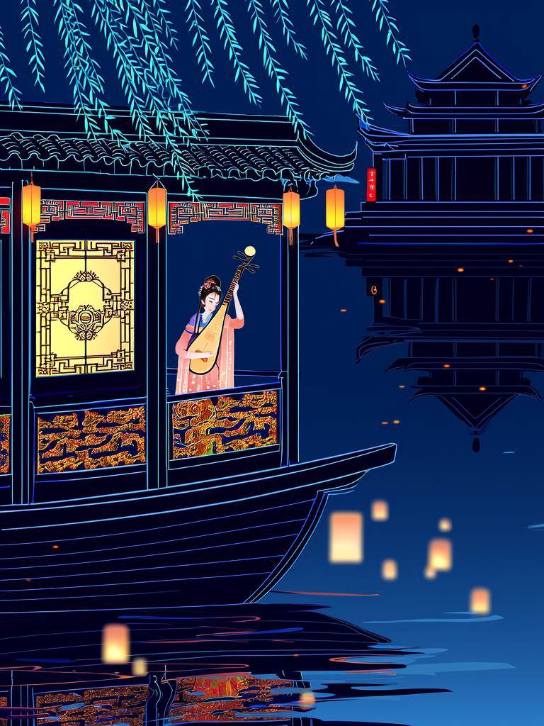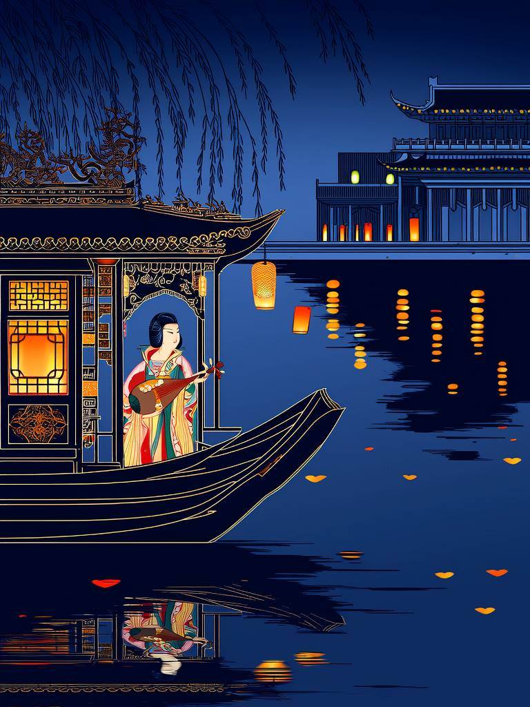 如今再泛舟秦淮,會發現不少主播開始講述《夜泊秦淮》的真正寓意。小艾轉型成文化博主,帶網友辨認古建筑上的楹聯;那首電子版《后庭花》被重新譜曲,填上了杜牧的詩句。當游船經過朱雀橋,有孩子指著岸邊的全息投影問:「媽媽,那個嘆氣的老爺爺是誰?」或許杜牧不曾想到,他當年的悲憤會化作數字時代的警世鐘,在千年后喚醒裝睡的人們。