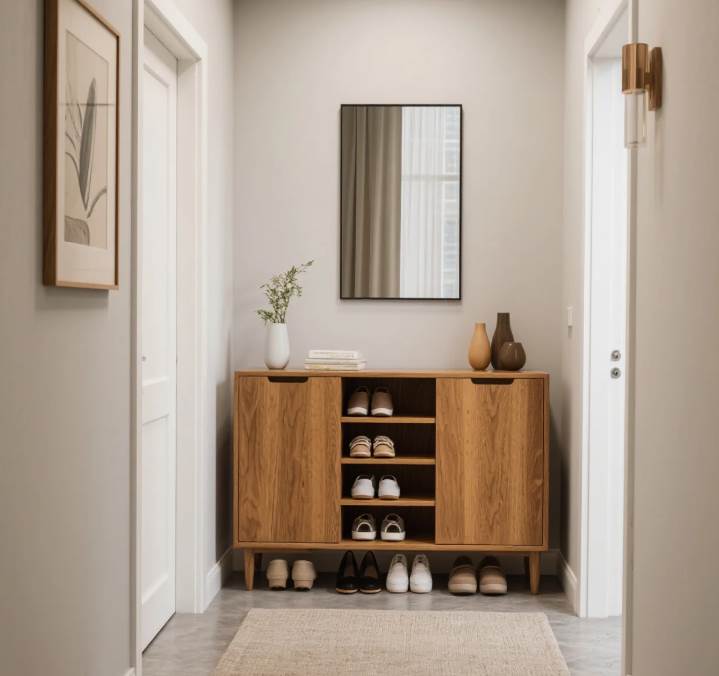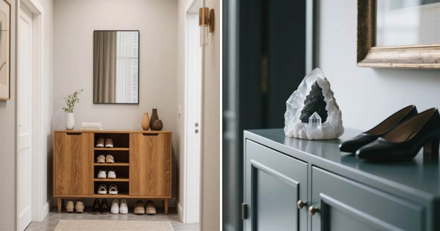 從命理角度分析,鞋柜屬「木」而錢財屬「金」,適當加入土屬性物品(陶瓷、水晶)或水屬性擺設(魚形裝飾),能形成「木土生金」「金水相生」的吉利循環。