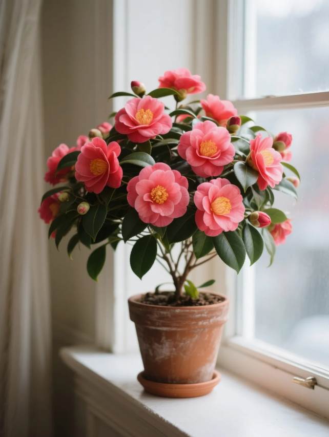 當發現茶花開始掉花苞,立即準備透明塑料袋(奶茶杯罩、保鮮膜都行)。選連續三天陰雨的傍晚,先給植株澆透水,然后把袋子從頂部往下套住整株茶花。注意在袋子頂部扎3-5個牙簽大小的透氣孔,底部用繩子松松捆住盆沿。每天中午掀開袋子通風1小時,連續套5-7天。這個方法能迅速鎖住濕度,避免花苞因溫差過大或冷風刺激脫落,就像給茶花蓋了間恒溫花房。