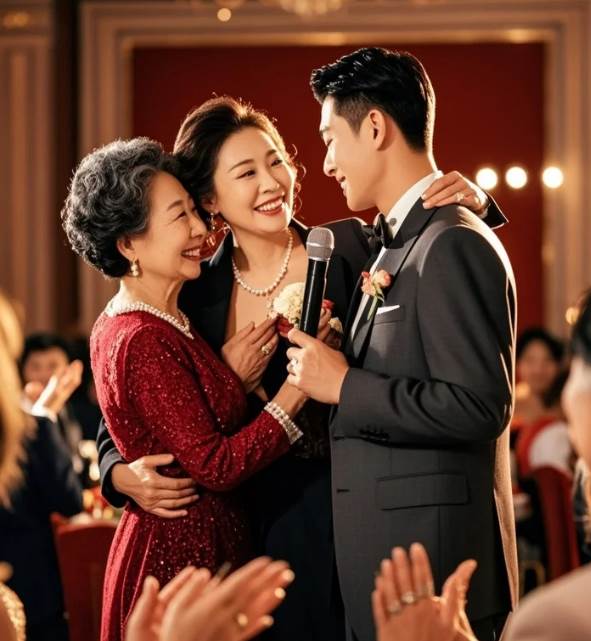 「媽,」林薇的聲音透過麥克風清晰地傳遍整個大廳,帶著笑意,也帶著一種不容置疑的明晰,「今天您辛苦了!您看,您摟著您兒子,我摟著我老公,我們倆一起敬大家一杯,好不好?」