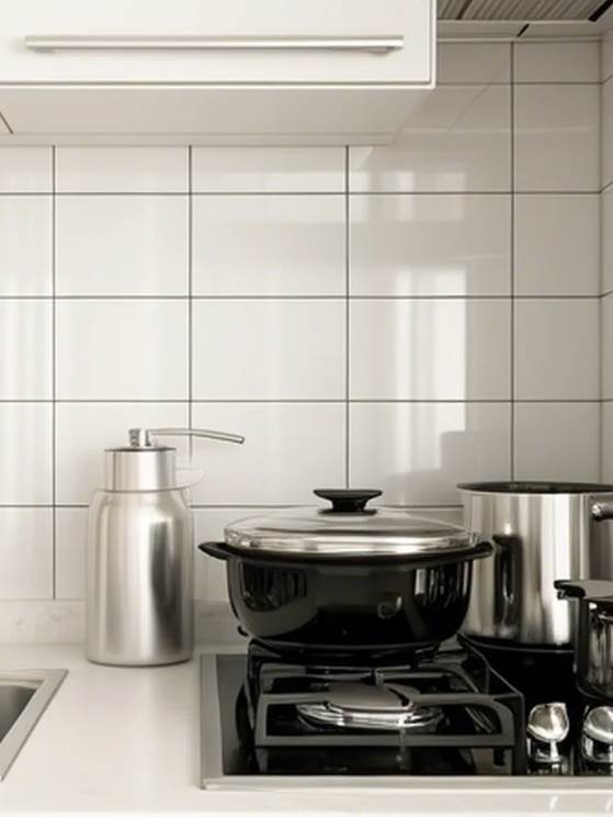 水槽位:放置圓形青銅水盆,每週三用海鹽淨化 瓦斯爐位:左側擺放金色貔貅罐,內裝紅棗、桂圓乾 冰箱位:貼「富」字紅紙,內層放置五穀雜糧罐