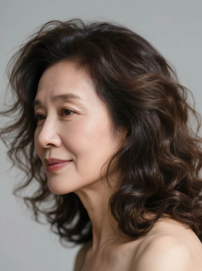 3. **拉長臉型比例:** 中長髮(約鎖骨到胸部上方)的長度,配合縱向的捲度線條,能自然地拉長臉部視覺比例,告別「短圓臉」。