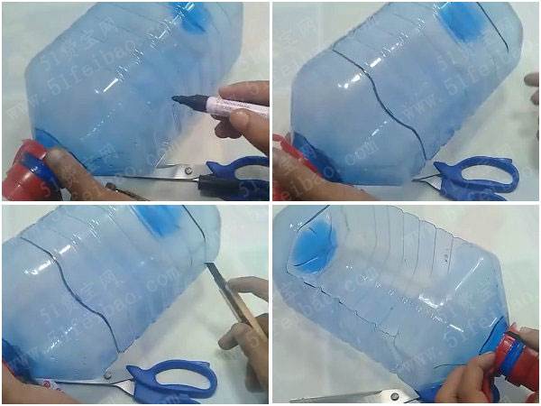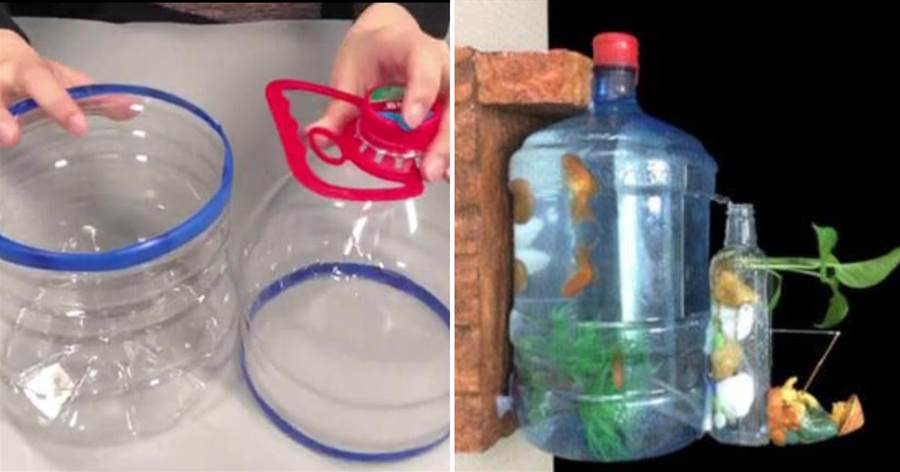 首先登場的是「免錢蔬果收納籃」,這招簡單到阿公看了都會!把5公升油桶倒放,用奇異筆在距離底部15公分處畫圈,沿線剪開後別急著丟掉上半部。