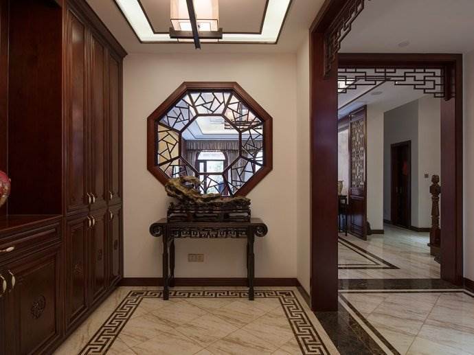建議將鏡子側掛于玄關東墻,既滿足使用需求,又可形成「金生水」的招財格局。