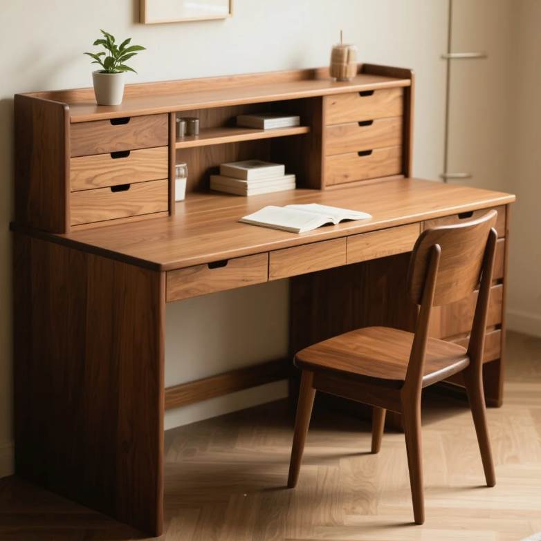 除了方位調整,還可透過風水小物加強效果:選用木質書桌象征「向上生長」;筆筒內放4支毛筆取「文昌四寶」之意;電腦螢幕背景用青綠色系舒緩眼睛壓力。注意書桌左青龍位(左側)宜高宜動,可放台燈或參考書;右白虎位(右側)需保持低平,避免堆置過高雜物形成壓迫感。