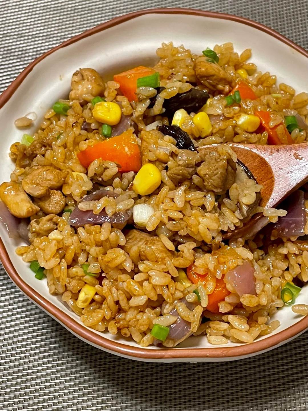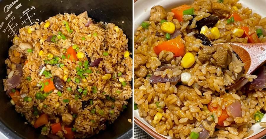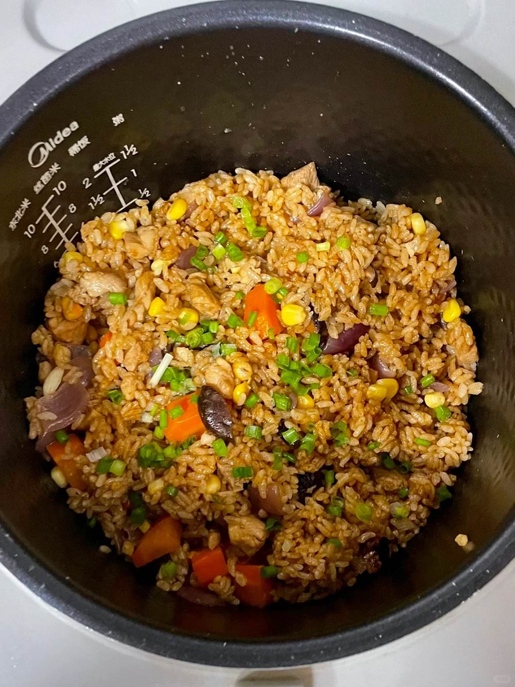當電飯鍋進入保溫狀態時,取出蒸好的菜品,此時米飯正好形成薄脆鍋巴。