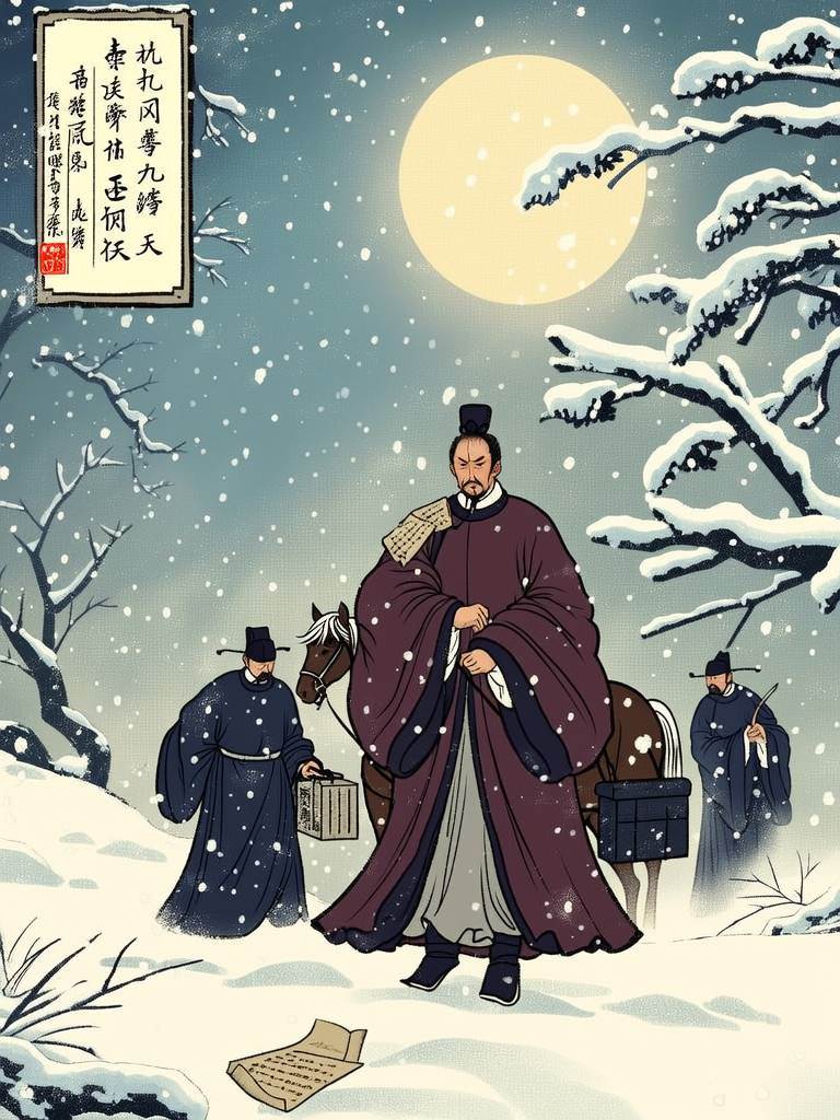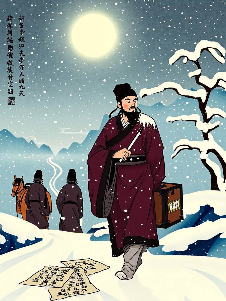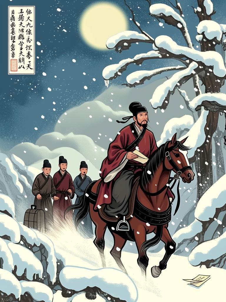 貶謫詔書來得比料想中更快。韓愈帶著家眷倉皇南行,行至藍關時,秦嶺山脈的積雪已深及馬腹。侄孫韓湘子策馬追來送行的場景,讓這位鐵骨錚錚的儒者終于崩潰。
