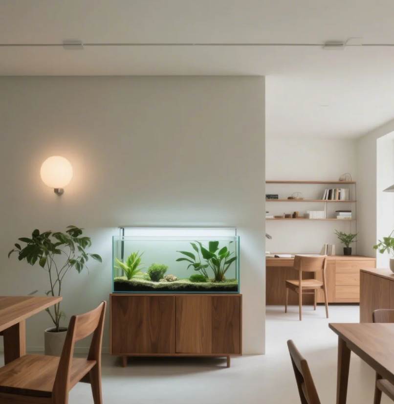 2. **書房/餐廳過渡區**:作為動靜交接處,水流能帶動思維活躍度與用餐愉悅感,建議選擇長方形缸體,水深保持30-40厘米。