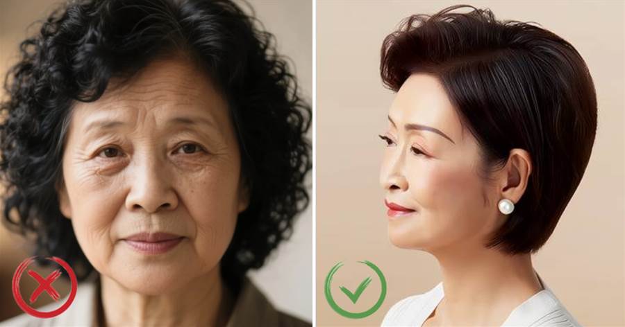 過度密集的小捲容易產生膨脹感,若搭配深黑髮色會加重頭頂扁塌問題,反而凸顯臉部皺紋。