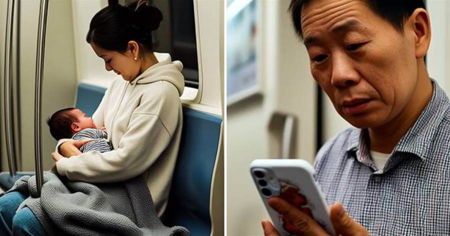 空氣突然變得粘稠。中年男子布滿皺紋的臉龐緊繃著,握著手機的指節發白,目光像釘子般戳向哺乳巾邊緣露出的一角布料。