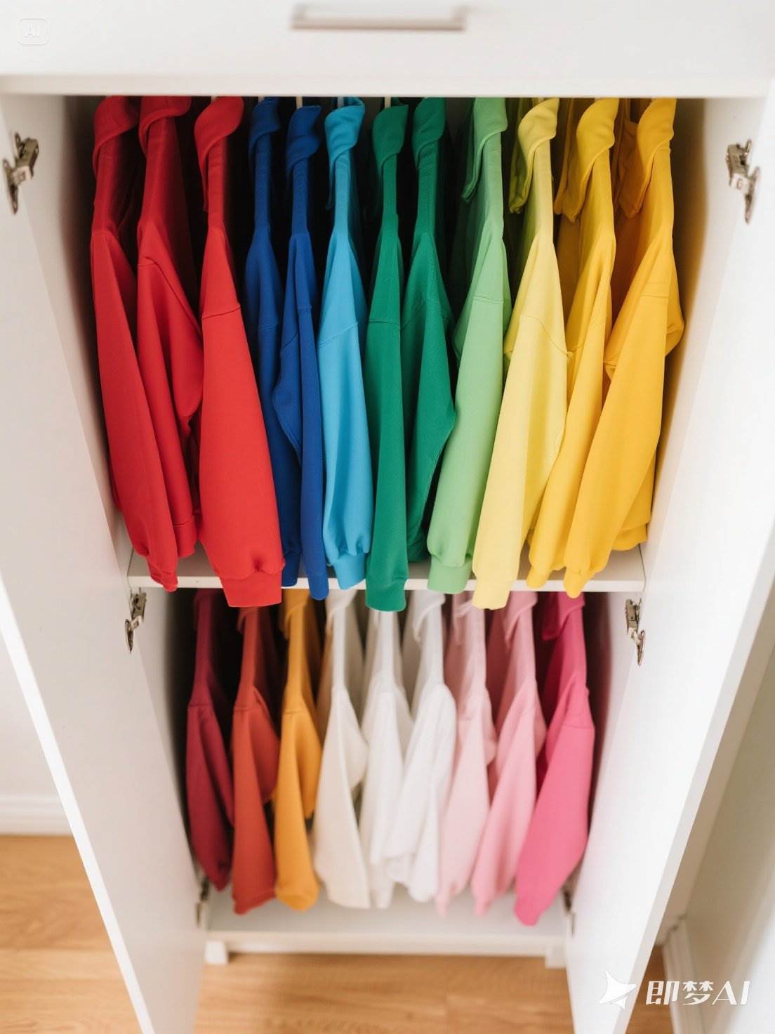 2. **按顏色分類收納**:黃色系衣物放在東方(事業位)、紅色系在南方(名聲位),強化風水磁場。