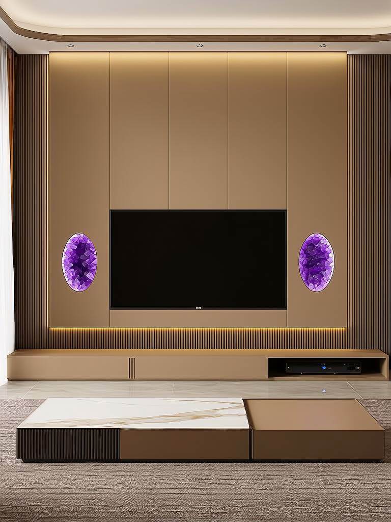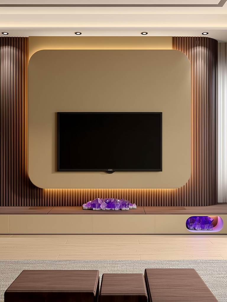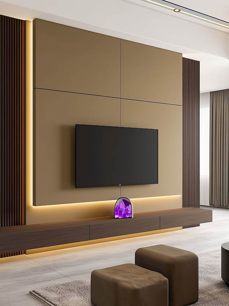 三角形裝飾、銳利金屬條等尖銳元素會產生"火形煞"。命理中"尖角沖射"主意外傷病,尤其影響家中老人和兒童。電視墻造型宜采用圓形、弧線等柔和線條,象征財氣流轉。