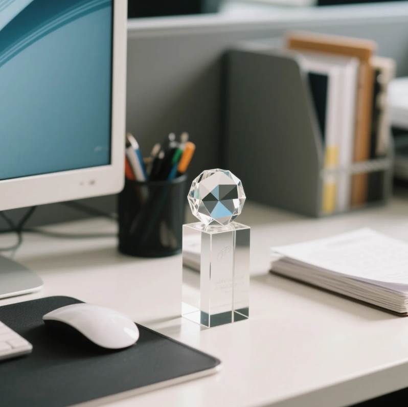可放置金色文件夾、金屬筆筒或水晶擺件,增強權威感。