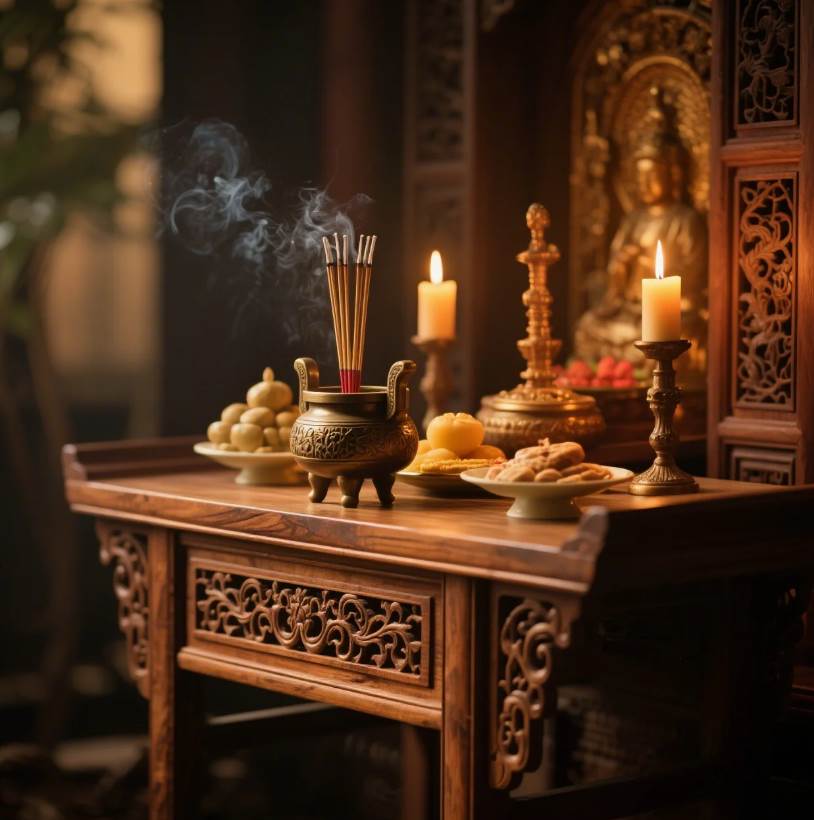 神桌風水講求「潔淨」與「尊重」,供品位置應高于胸口,避免穢氣沾染;每日燃香時可簡短表達感恩,但不必過度繁復;鮮花水果建議每3天更換,乾貨則每月替換一次。需留意神桌周邊勿堆雜物,燈光保持明亮,若環境許可可加掛紅色系布幔(如棗紅色)增強吉氣。屬牛、羊者若近期常感不順,不妨檢視家中供品是否符合命理,適時調整有助化解無形阻礙。