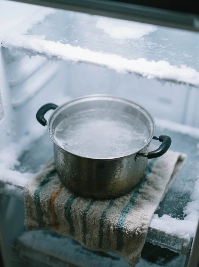 關鍵就在「熱能接力賽」這招。先把冰箱電源關掉,拿出平常煮泡麵的深鍋裝沸水,底下記得墊條吸水的舊毛巾。把這組「行動桑拿設備」放進冷凍庫後緊閉門板,神奇的事情發生了——三分鐘後重新開門,那些原本死黏在金屬層板上的冰塊,居然像融化的雪花冰整片滑落。原理其實很物理課本,水蒸氣遇到冷凍庫的低溫會先凝結,但持續的熱能供應又讓冰層結構鬆動,就像替冰塊做漸進式熱身運動,自然乖乖脫離冰箱內壁。