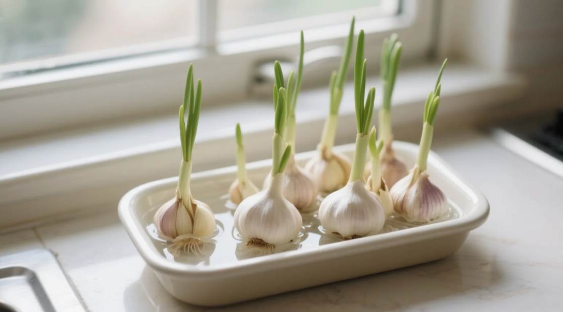 **標題:大蒜發芽別扔!泡水三天變蒜苗,半月吃三茬,手殘黨也能輕松搞定!**
