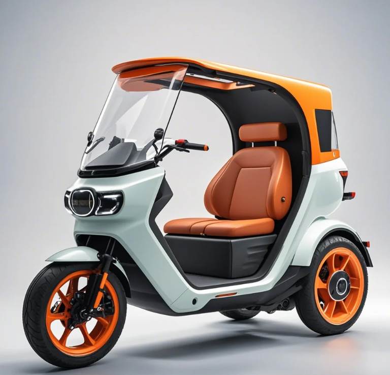 這台名為「Mochi」的三輪車,完美詮釋了什麼叫「行走的甜品店」——薄荷綠車身+活力橙輪轂,像是把春天嚼碎了涂滿全車。更絕的是車漆采用日本「斑馬吉卜力」聯名工藝,在陽光下會折射出彩虹糖般的光澤,連特斯拉Model Y都要側目三分。