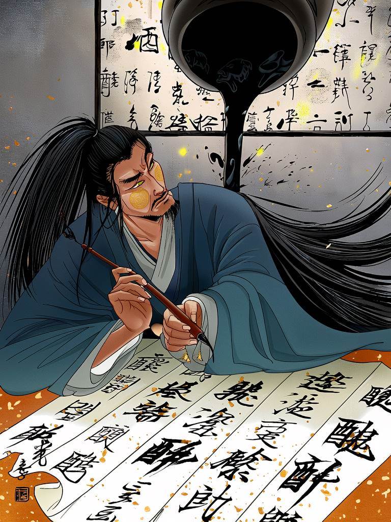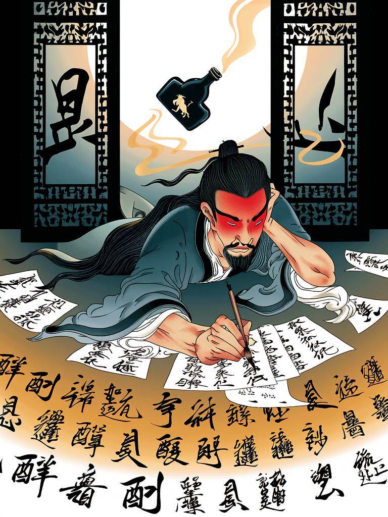 辛棄疾突然揮毫潑墨,酒氣與墨香在宣紙上糾纏:「醉里且貪歡笑,要愁那得工夫...」每一個「醉」字都如重錘擊鼓。