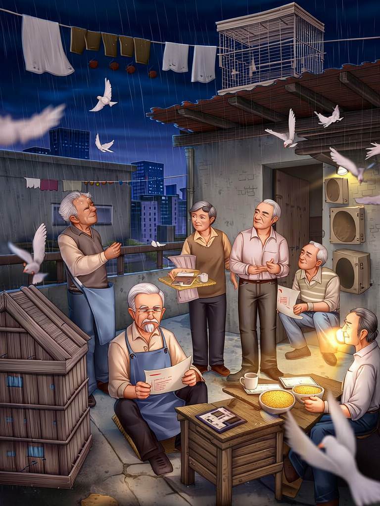 凌晨三點,陳阿公獨自在頂樓拆解鐵網。晨曦微露時,帶著體溫的三十多羽信鴿被分批送往信鴿協會托管。當早起的住戶看見空蕩蕩的頂樓時,林伯伯正將陳阿公的同意書放進管委會信箱。