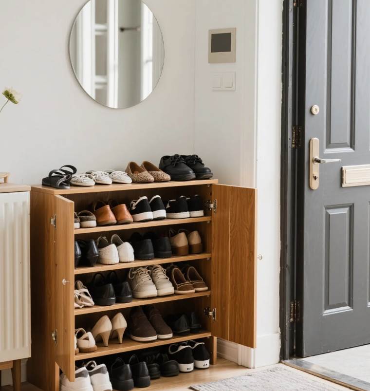 2. **雜亂鞋柜**:台灣家庭必備的鞋柜若堆滿未清潔的鞋子,易帶來「穢氣」。實測顯示,鞋柜內每平方公分菌落數可達廁所的3倍。建議選擇帶門的通風柜體,定期用酒精擦拭,保持鞋子頭朝外整齊擺放。