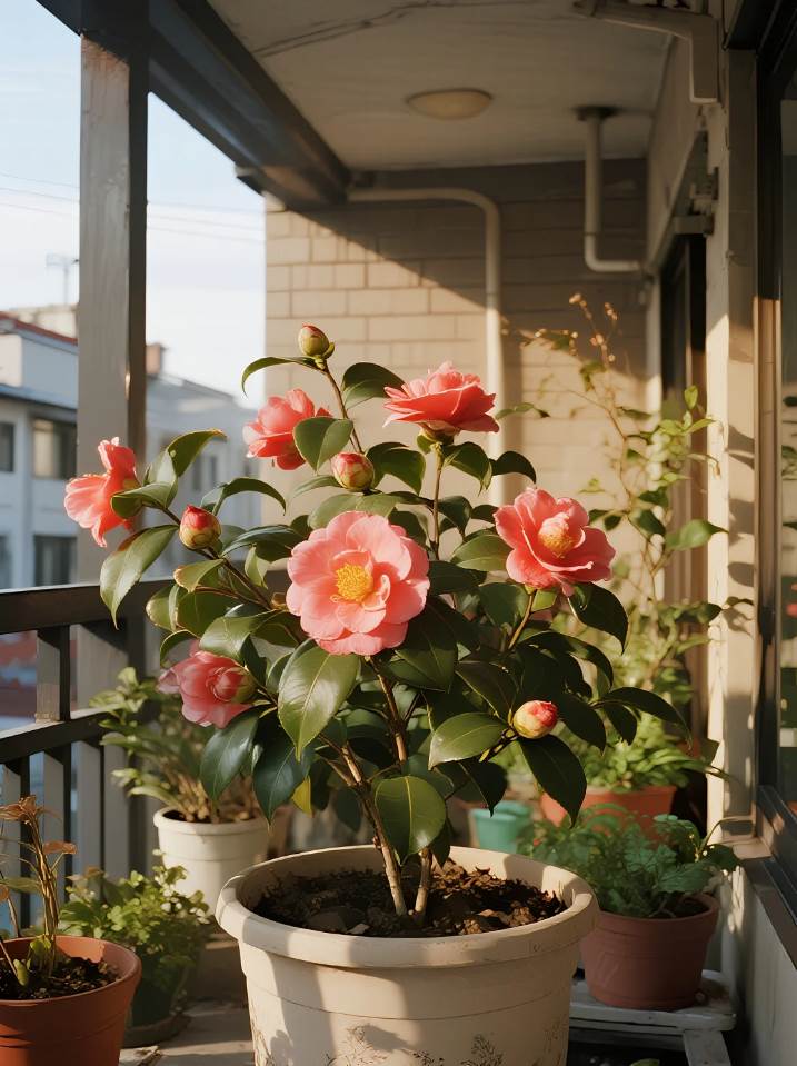 * **低溫刺激不可少**:茶花花苞發育,需要經歷一段**較低溫度(5℃左右)** 的刺激。深秋到初冬,別急著把茶花搬進暖氣房!讓它**在陽台、窗邊等溫度較低(但避免嚴重霜凍)的地方待上至少一個月**。