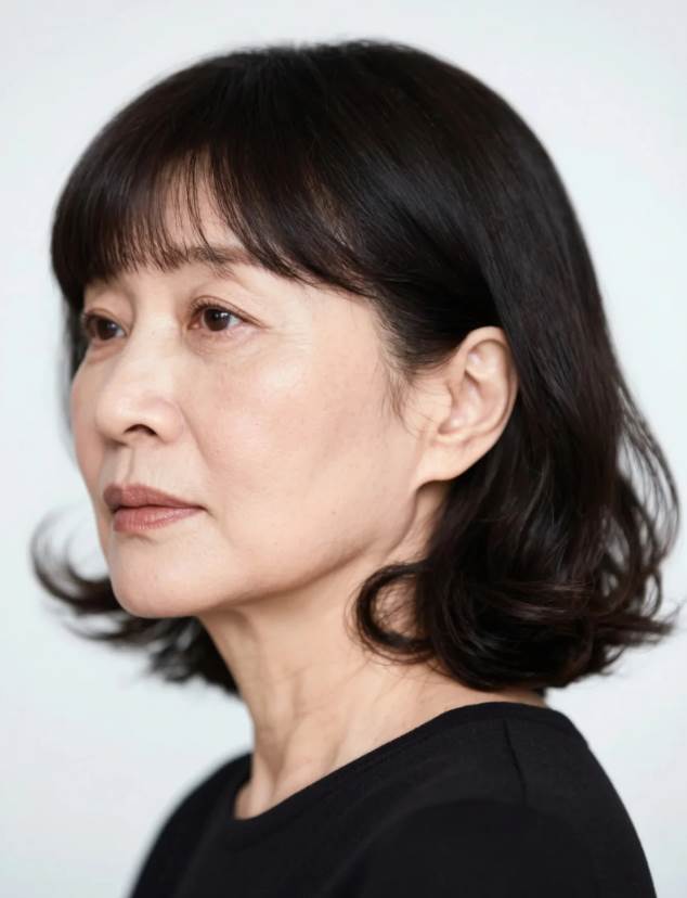 2. **厚重齊劉海+耳下捲**