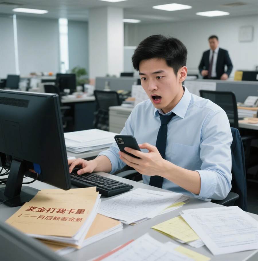 然而,看到賬戶余額的那一刻,他愣住了 —— 獎金金額與預期相差甚遠。陳剛以為是銀行轉賬出錯,又仔細核對了幾遍,可金額確實不對。他滿心疑惑,決定找公司會計詢問情況。