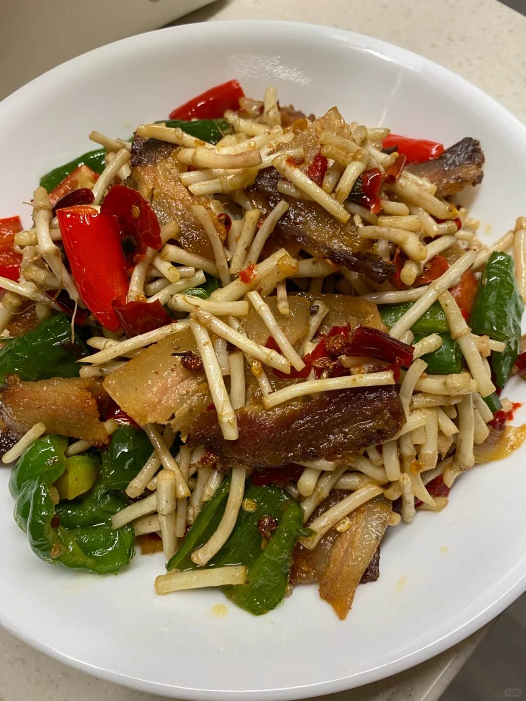 若是吃不慣生食,試試魚腥草炒臘肉這道經典搭配。將農家煙熏臘肉切薄片煸出油脂,下姜蒜末爆香后,快速倒入焯過水的魚腥草嫩葉。