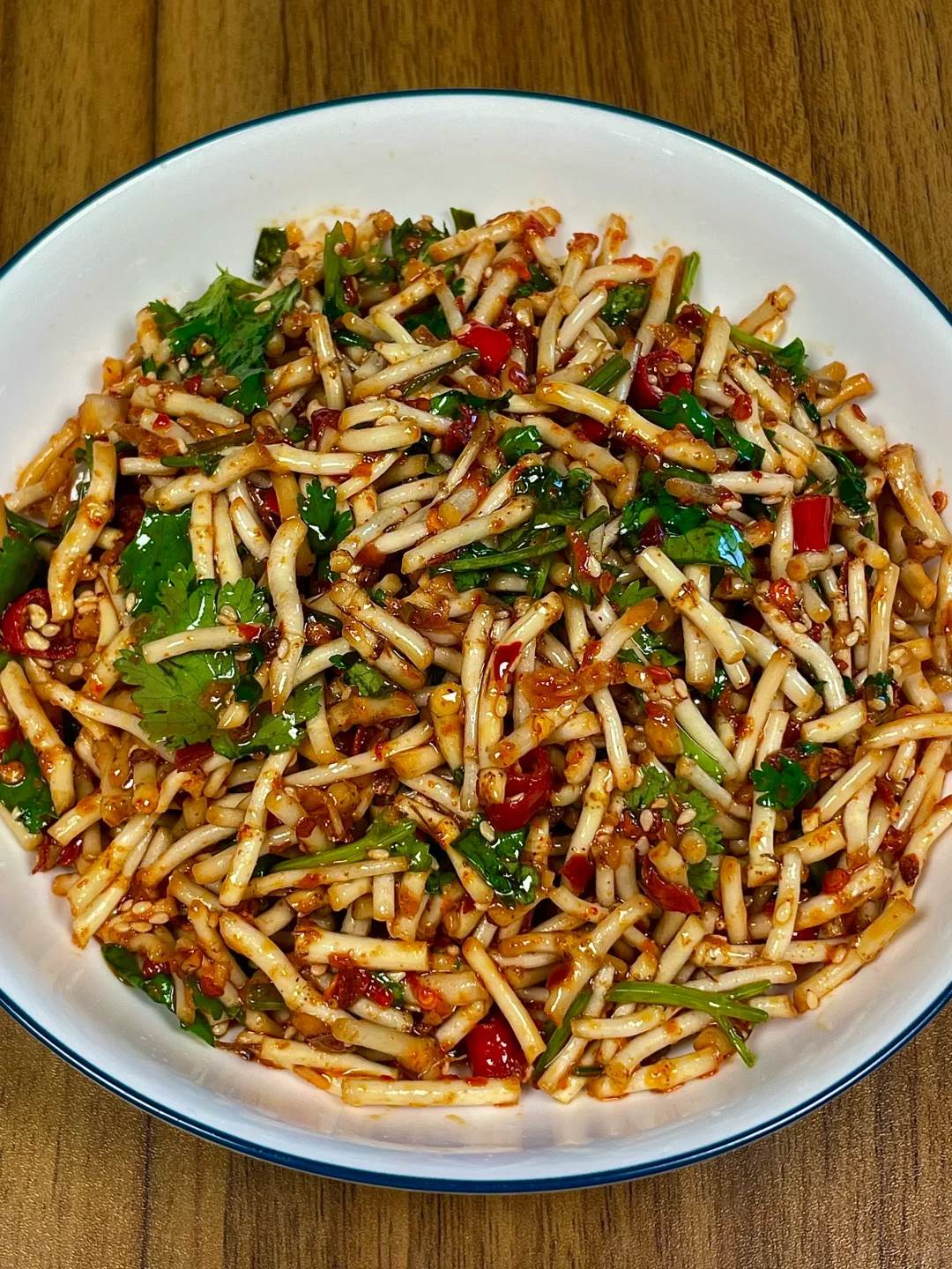要說魚腥草最地道的吃法,當屬雲貴地區的涼拌折耳根。取半斤新鮮葉片洗凈,掐去老莖只留嫩葉嫩芽,在清水中加少許食鹽浸泡十分鐘去除土腥味。這時候準備靈魂料汁:蒜末、小米辣各1勺,貴州糊辣椒面2勺,淋上燒至冒煙的花椒油激出香氣,再調入3勺香醋、2勺生抽、半勺白糖,最后撒上香菜碎拌勻。處理好的魚腥草葉攥干水分,澆上紅亮亮的料汁顛盆拌勻,酸辣爽脆間透著淡淡藥香,配白粥能喝兩大碗。
